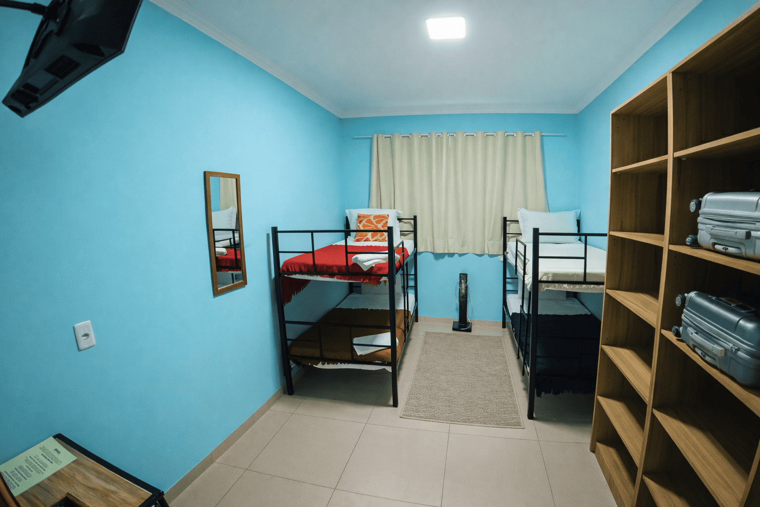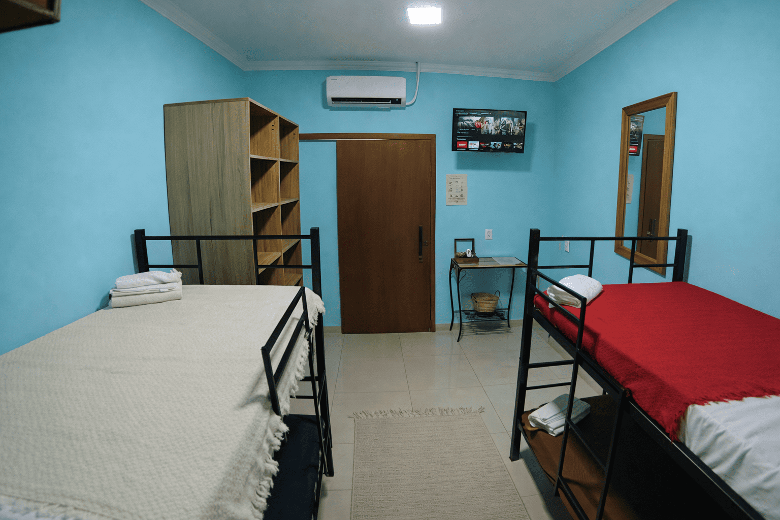 O Quarto Katu é ideal para famílias ou grupos de até 4 pessoas. Possui dois beliches, armários, ar-condicionado e TV com streaming.